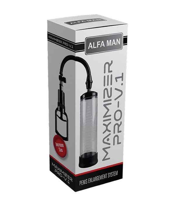 Alfa Man MAXIMIZER PRO V.1 Pump, vakum basıncı prensibiyle çalışan ve genital bölgedeki kan dolaşımını geçici olarak artırmayı hedefleyen medikal sınıf bir pompa cihazıdır.
